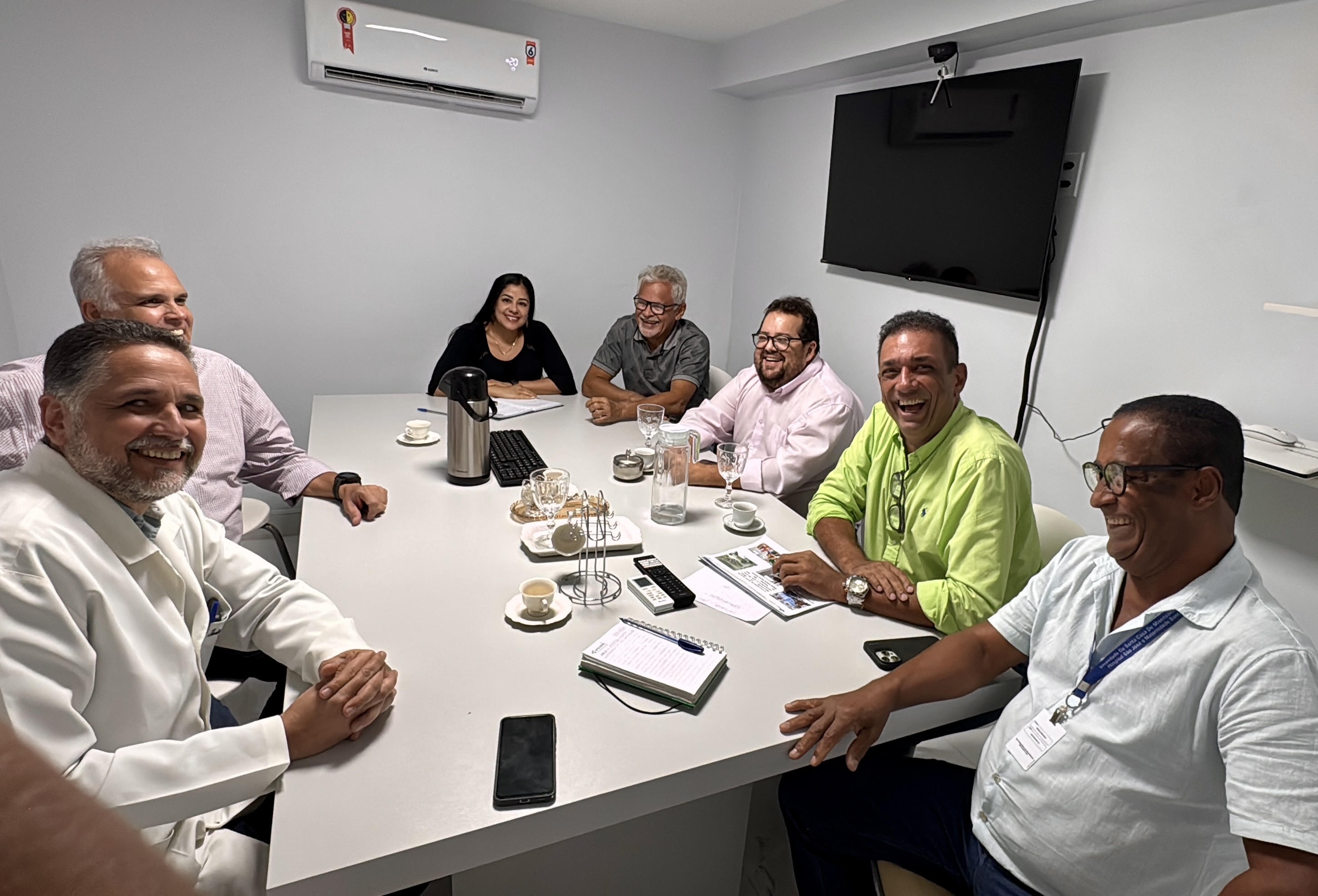 A reunião contou com a presença do Provedor Dr. Osvaldo e do Diretor Administrativo Sérgio, além do Diretor Médico Dr. Juliano. Entre os principais temas da pauta estiveram a situação financeira da Santa Casa, o abastecimento de recursos mensais e a avaliação das áreas de oncologia, emergência e UTI, consideradas fundamentais para o atendimento regional.