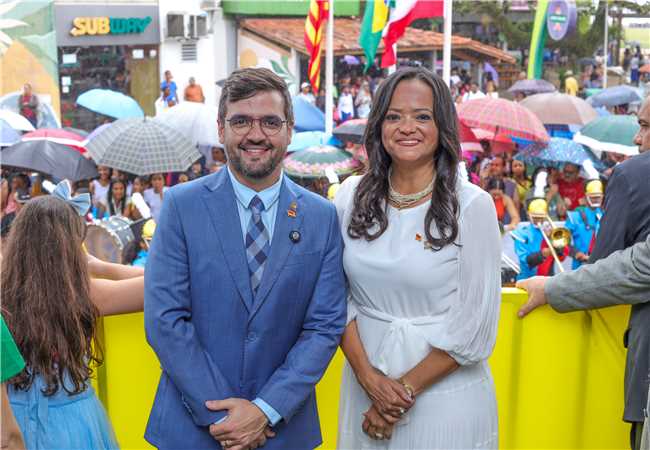 Neste ano, o desfile teve como tema “Do Grito da Independência aos Caminhos da Inclusão”, destacando a participação social e o respeito à diversidade. O prefeito Valderico Junior e a vice-prefeira Wanessa acompanharam o ato ao lado de secretários, vereadores, autoridades civis e militares.