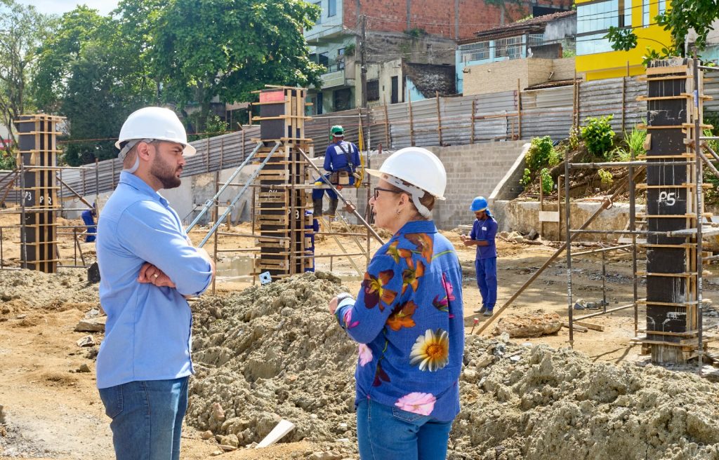 Legenda: Secretária Sônia Fontes visita canteiro de obras da Feira do Califórnia com fiscal da CONDER – Fotos Pedro Augusto – Secom – Prefeitura Itabuna